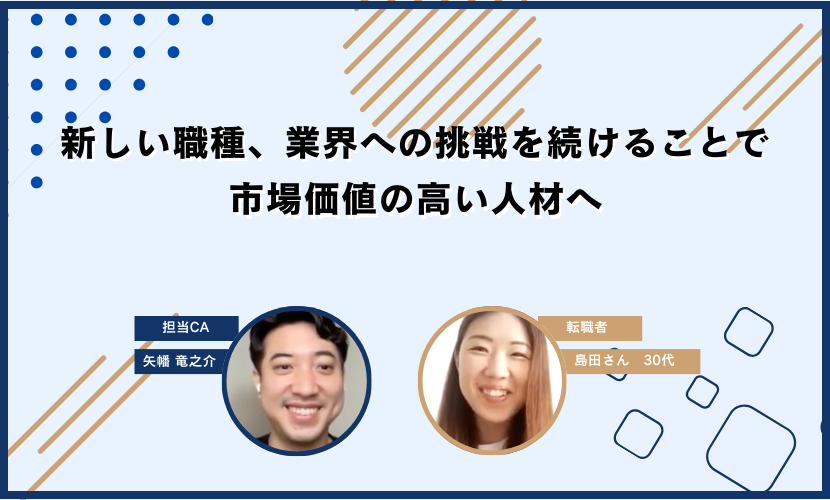 まず履歴書や職務経歴書の添削をしていただき、その後は企業ごとに想定される質問への回答を一緒に整理しました。また、面接後に不採用となった場合には企業からのフィードバックをもとに改善点を考え、次の面接に活かすようにしていました。